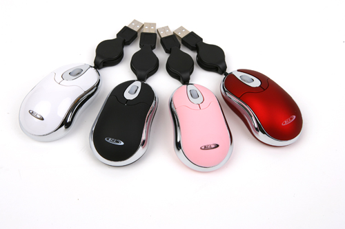 BCL Mini Optical USB Mouse With Retractable Cable White